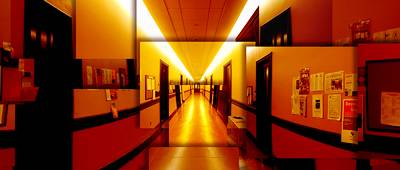 The rest of the work was as widely varied in subject and technique. Camila Chateau featured Nassau Street merging into Holder Courtyard, a giant giraffe wandering through the scene (shown below). In a sort of De Chirico meets Dali, Zach Ruchman merged skewed perspectives of Clio Hall, his friend Dora perching simultaneously in improbable places. Jacob Denz manufactured a Picasso-esque vision of his cello (“This image represents how I feel during orchestra rehearsals,” Denz quipped.) Jing Lin’s subject was a long corridor in Frist made to feel even longer through expert warping, merging and subtle color shifts.