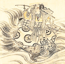 Utagawa Shigetoshi's finished preparatory drawing from the mid-19th century shows legendary fisherman Urashima Tarō riding a mythical turtle.