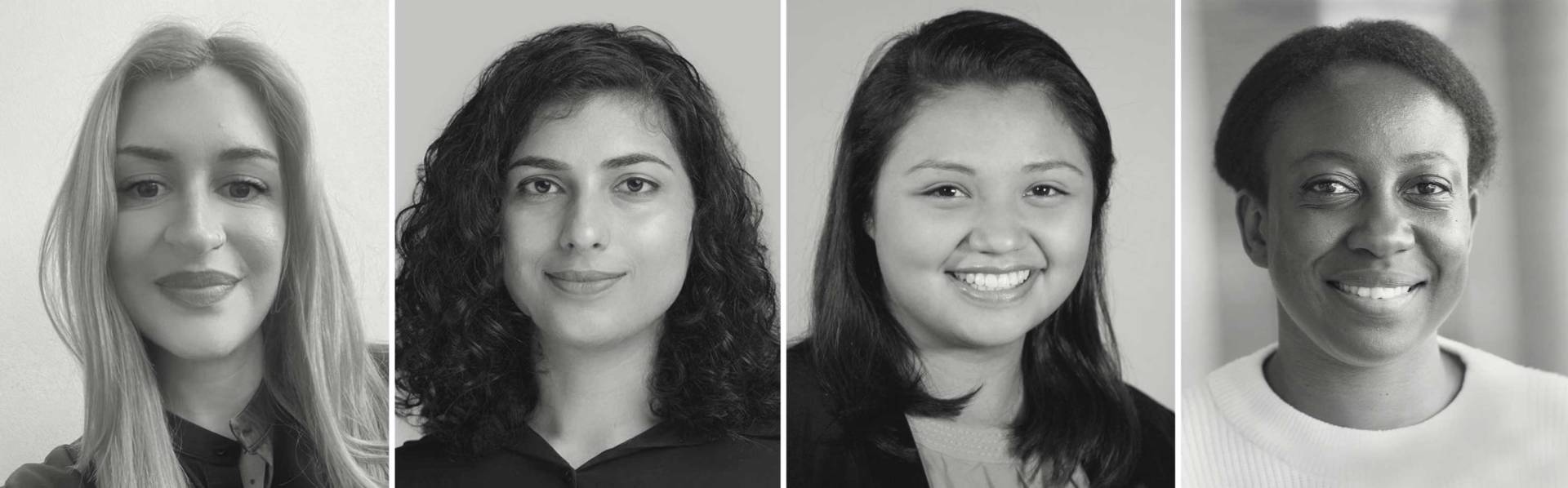 From left: Archontoula Giannakopoulou, Amna Liaqat, Marayna Martinez, and Laetitia Mwilambwe-Tshilobo